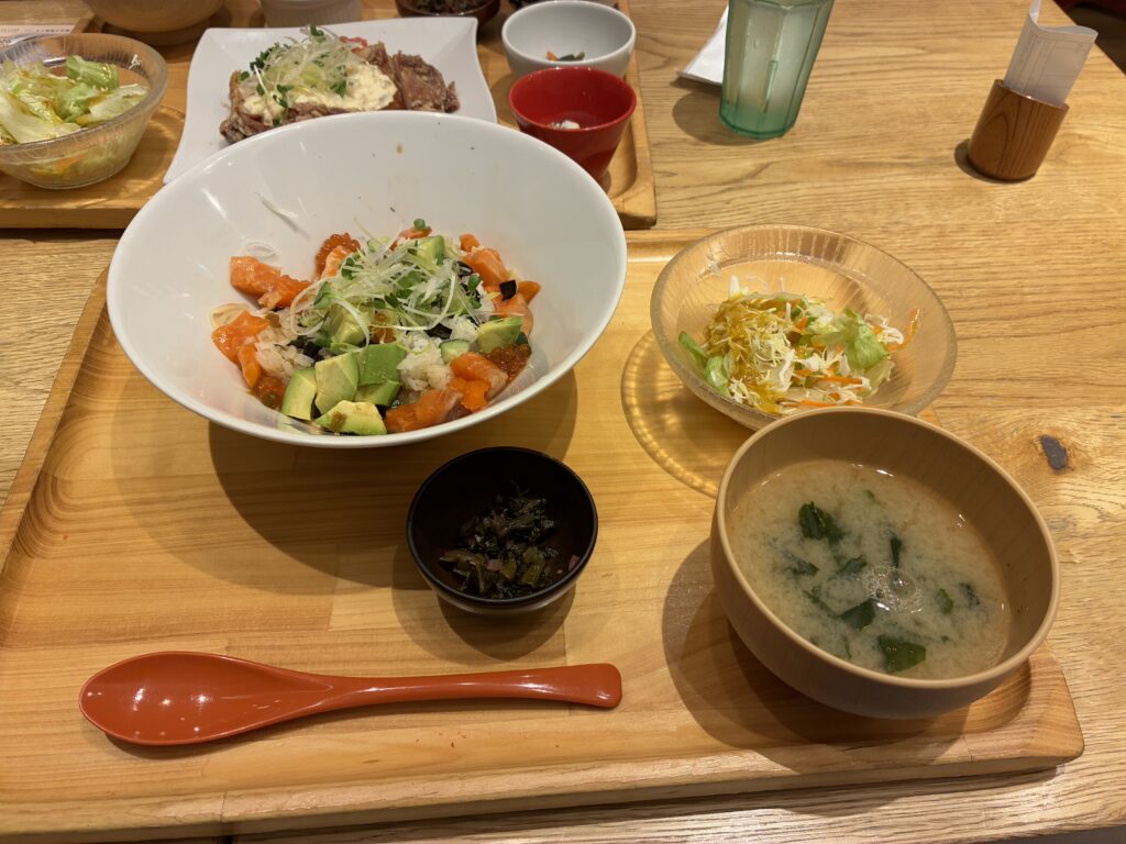 「おぼんdeごはん」で食事をして、お味噌汁とご飯はおかわり自由。